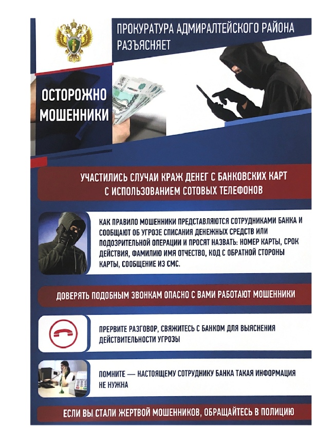 Прокуратура Адмиралтейского района разъясняет осторожно мошенники