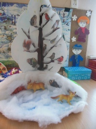 В рамках этого проекта мы познакомились с зимующими птицами нашего края. Узнали, кто, где зимует. Что б детям было легче запомнить, мы изготовили макет «Зимующие звери»